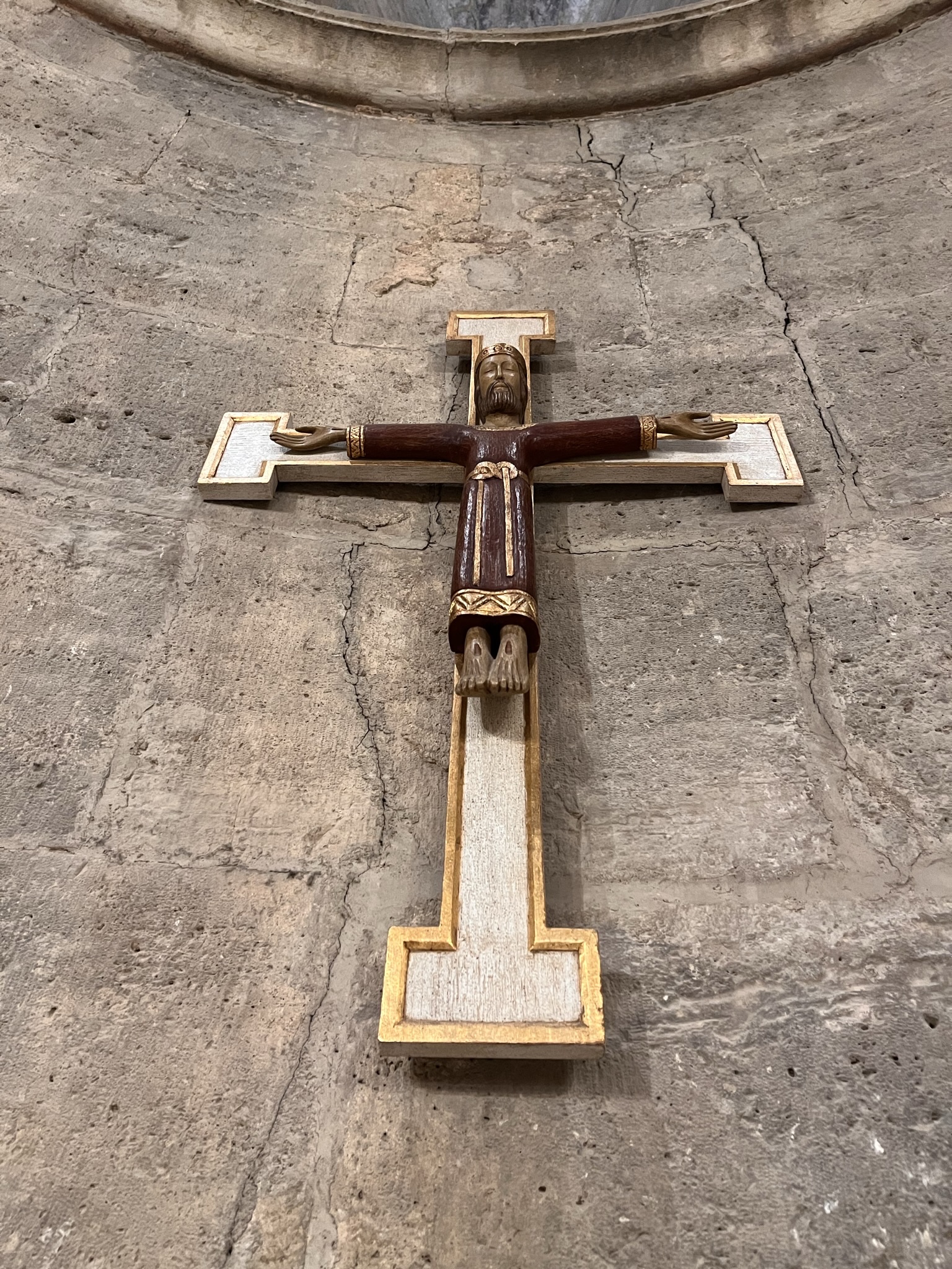 Nella bellissima chiesa del monastero benedettino si trova questa croce del Cristo Re Crocifisso.