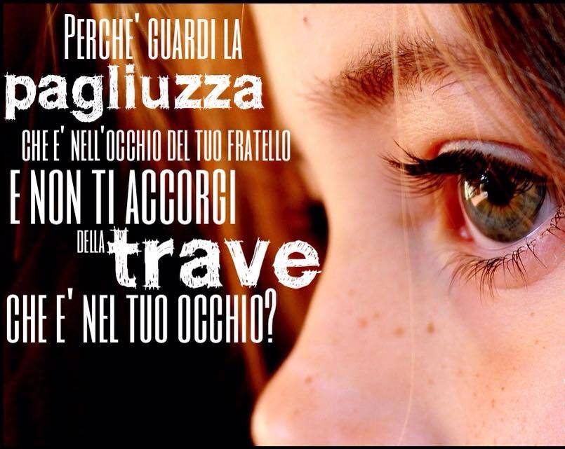 Perché guardi la pagliuzza che è nell'occhio di tuo fratello? Notiamo la precisione del verbo: perché "guardi", e non semplicemente "vedi"; perché osservi, fissi lo sguardo su pagliuzze, sciocchezze, piccole cose storte, scruti l'ombra anziché la luce di quell'occhio?